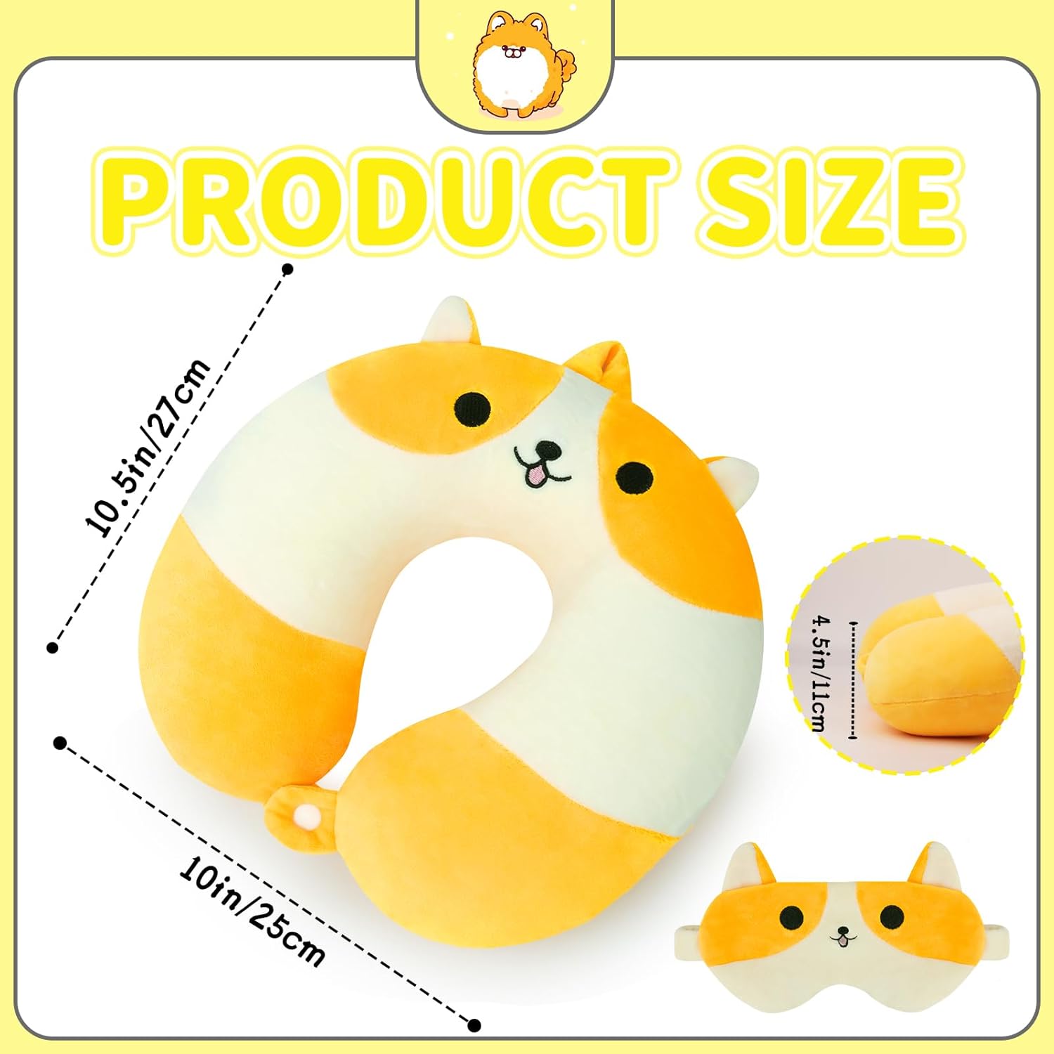 Cartoon Travel Pillow for Kids Boys & Girls, Teens, Travel Accessories for Airplane, Car, Memory Foam Cute Travel Pillow with Sleep Eye Mask – Corgi